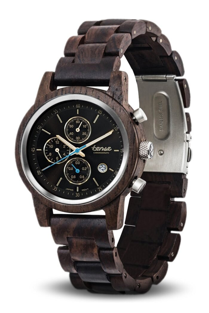 This unisex 6-hand chronograph features 3 sub-dials showing the Chrono in minutes. hours and seconds. The Cambridge is made from 100% recycled or reclaimed wood. with Miyota 0S90 watch movement from Japan and is adjustable in size. With this Miyota movement. the centre Chrono second hand moves only when the Chronograph function is activated.